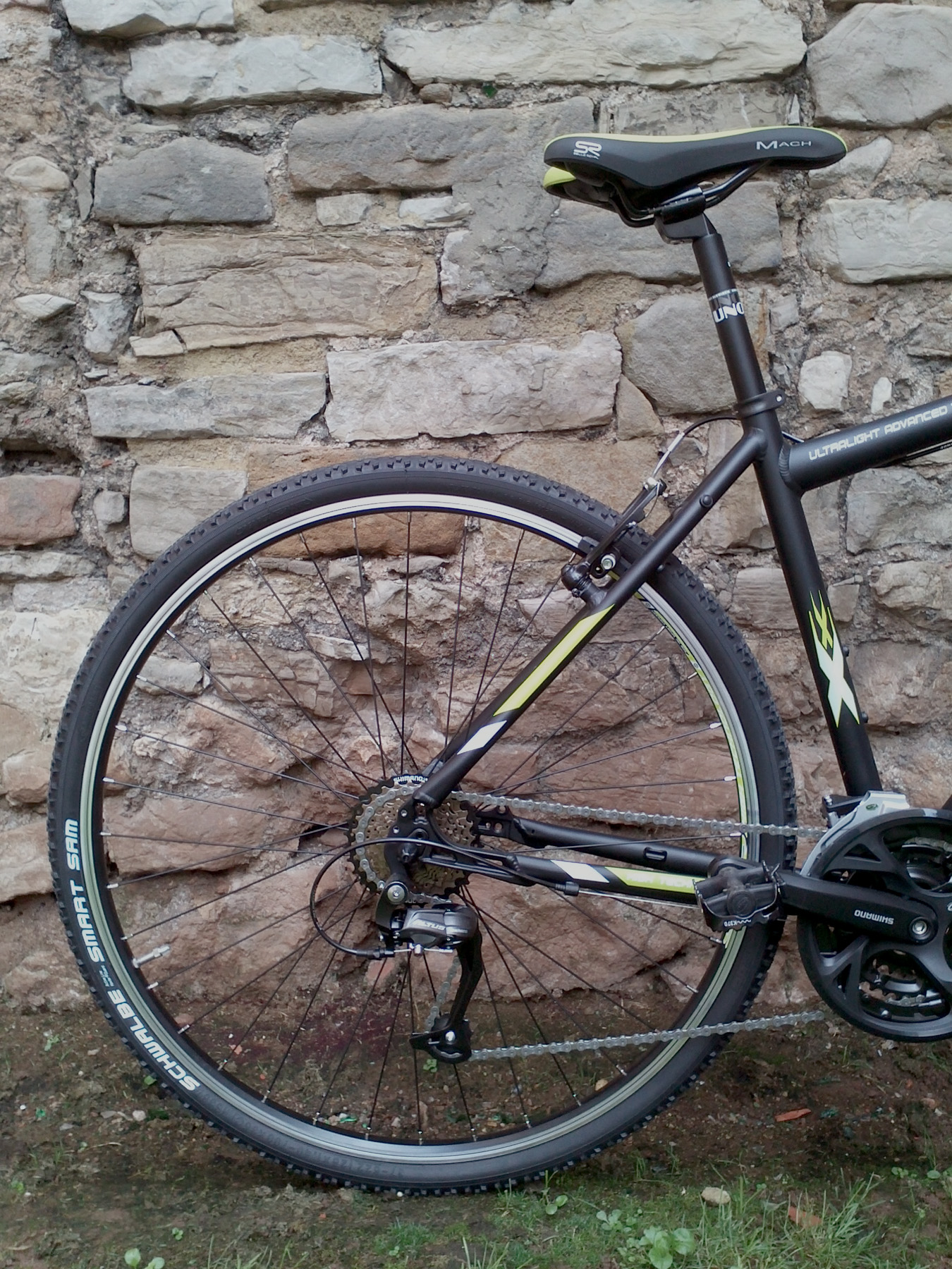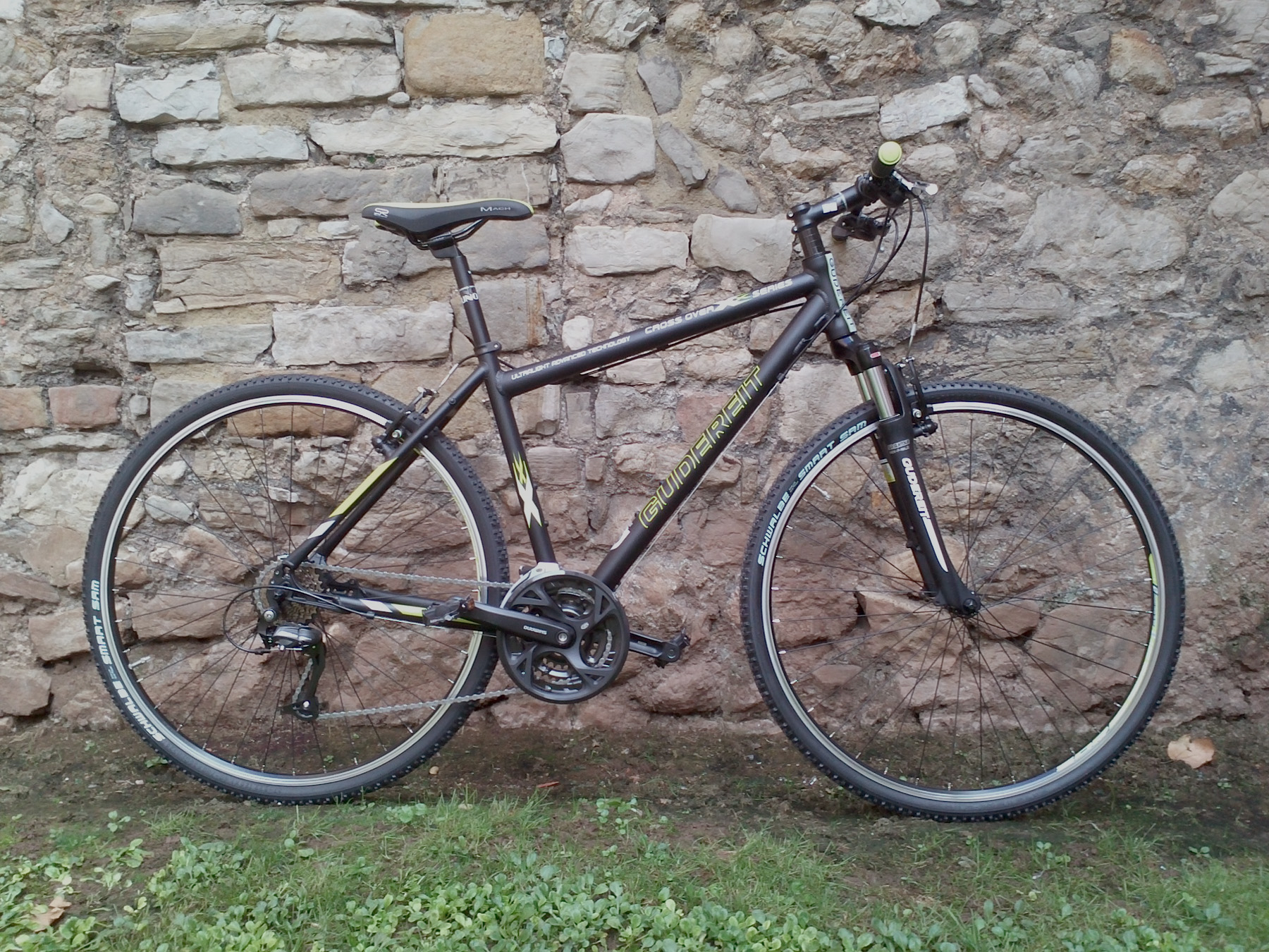 Una de las mejores híbridas del mercado en relación calidad/precio, de robusta fabricación alemana. Perfecta tanto para el uso urbano a diario como para ruteo cicloturista exigente. Perfecta para una equipación personalizada (portabultos, guardabarros, etc.), disponible en todas las tallas y tres geometrías de cuadro: barra alta, baja y media (trapez). Cuadro de aluminio, ruedas de 28 pulgadas con cubiertas mixtas Schwalbe Smart Sam de 1.40 pulgadas de grosor. 3×9 velocidades Shimano Altus, frenos V-brake y horquilla de suspensión bloqueable SR Suntour Nex-P-MLO.